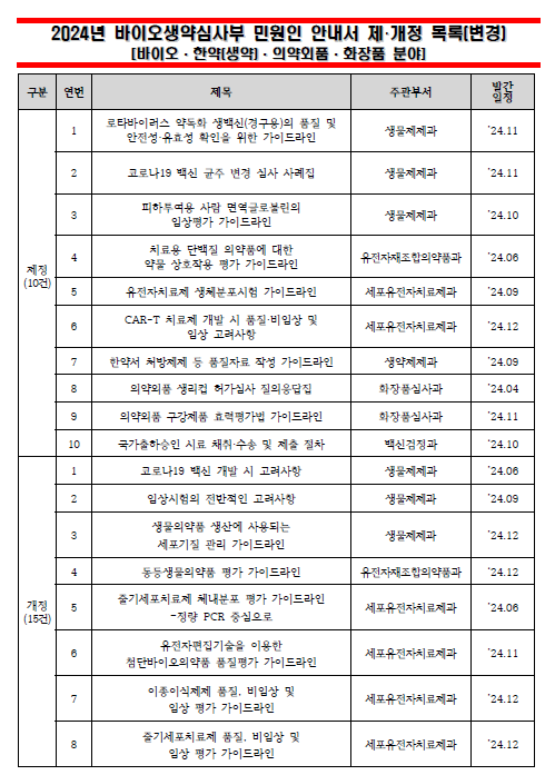 | 2024년 바이오생약심사부 민원인 안내서 발간계획(변경) | ||